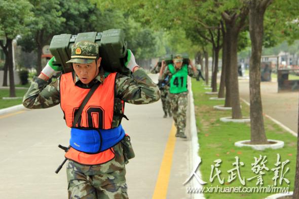 背弹药箱冲刺。图片来源:人民武警报