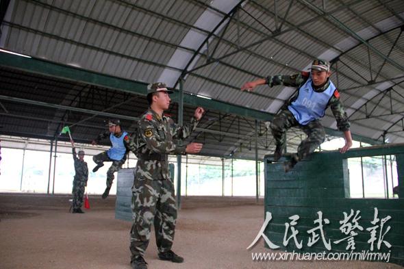 通过矮墙。图片来源:人民武警报