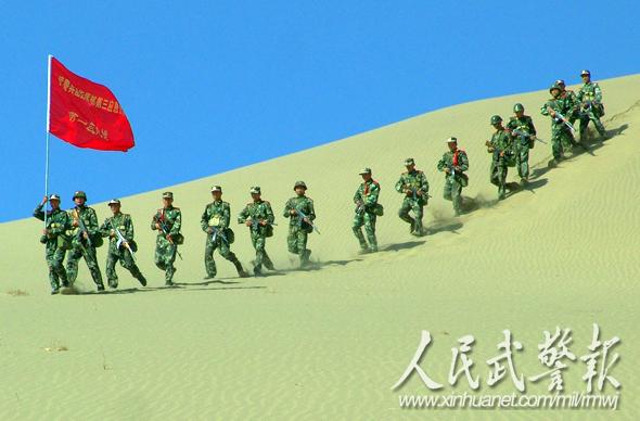 挺进大漠。图片来源:人民武警报