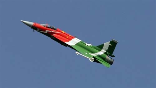 中国出口巴基斯坦的“枭龙”战机在巴国庆日庆祝仪式上飞行表演,该机被涂上中巴两国国旗(组图)
