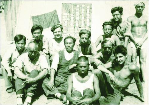 1939年国际纵队战士受困于法国集中营,他们身后是朱德等人赠送的锦旗。