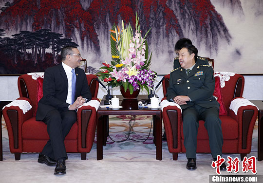 副总参谋长孙建国和马来西亚驻华大使伊斯甘达等参加了会见。(张旗)