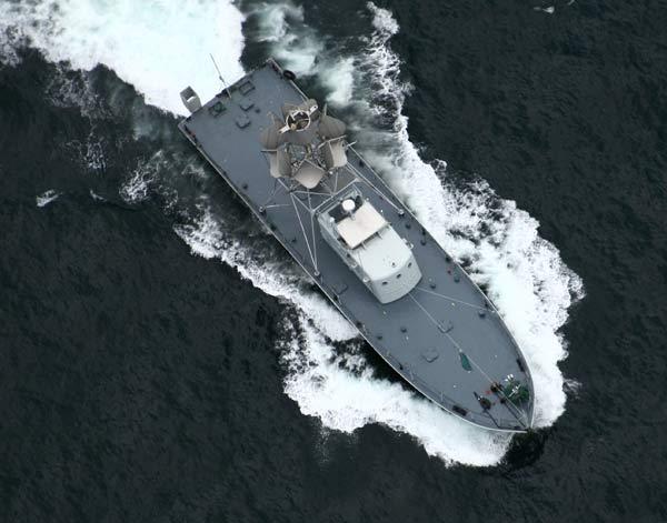 新型无人靶船在海面上驰骋。 崔晓龙 摄