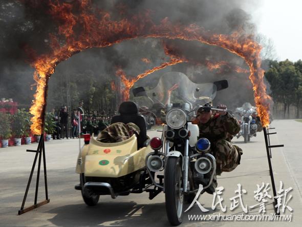 直击武警惊险训练:穿越火障 摩托特技(组图)