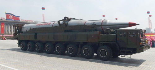 朝鲜2013年7月金日成广场举行阅兵式期间展出的移动式新型导弹“KN 08”