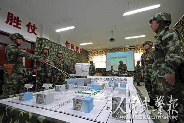 图为官兵正在进行战法研究。图片来源:人民武警报