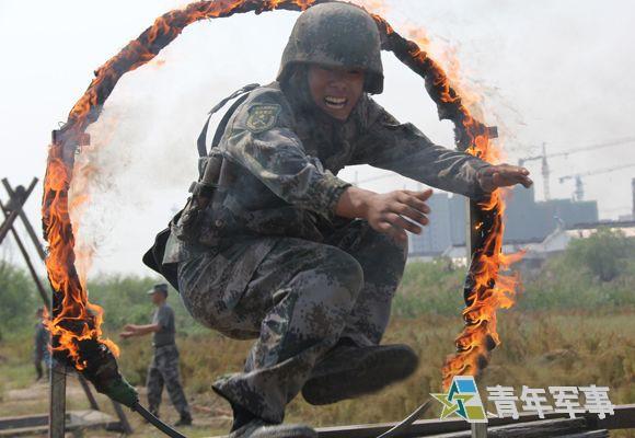北京军区“开放第一师”严酷训练:钻火圈 狠搏击