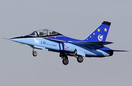 L-15是中国迄今为止研制的最为先进的教练机,其最大起飞重量9800千克,实用升限16500米,机身长度12.27米,翼展9.48米。L-15的机身结构中有25%由碳复合材料制成。该机的使用寿命长达1万小时(30年)。L-15可用于培训飞行员掌握操控歼-10、歼-11和F-16等第三代战斗机的技能。