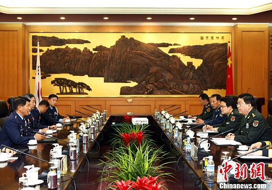 11月19日下午,中国国防部部长常万全在北京八一大楼会见来华访问的韩国空军参谋总长成日焕一行。中新社发 宋吉河 摄