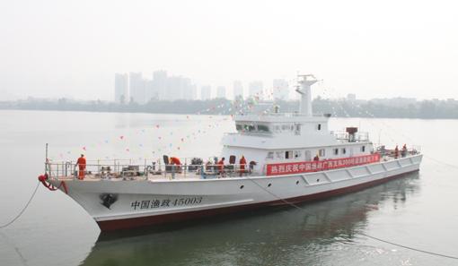 广西渔政大队300吨级渔政船下水(图)