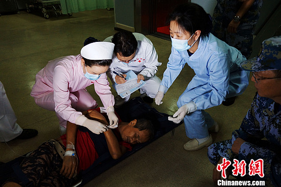 中新社菲律宾莱特湾11月24日电 (记者 王曦)首批因“海燕”强台风袭击受伤的3名菲律宾患者通过菲海军巡逻艇被转送到中国海军和平方舟医院船,海上医院第一时间组织医务人员为患者实施了手术治疗。