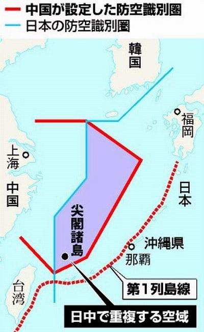 中国国防部23日发布了防空识别区的划定范围,其中一部分与日本划定的防空识别区有所重合。