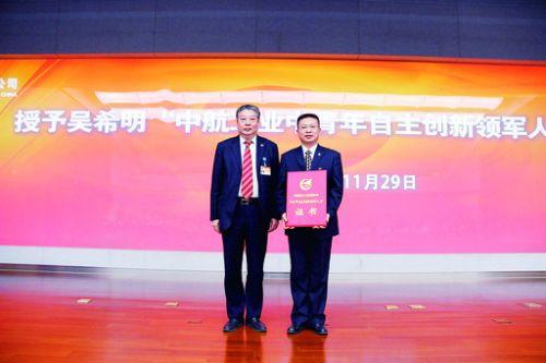 11月29日,中航工业在北京举行表彰仪式,授予吴希明“中航工业中青年自主创新领军人才”荣誉称号,并重奖150万元。中航工业董事长林左鸣出席仪式,中航工业副总经理高建设主持仪式并宣读表彰决定。