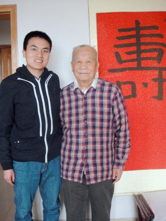 何晓闽采访老前辈合影留念。组建并领导地空导弹部队参加十年机动防空作战的老红军贺芳齐,当时担任三基地首任政委。