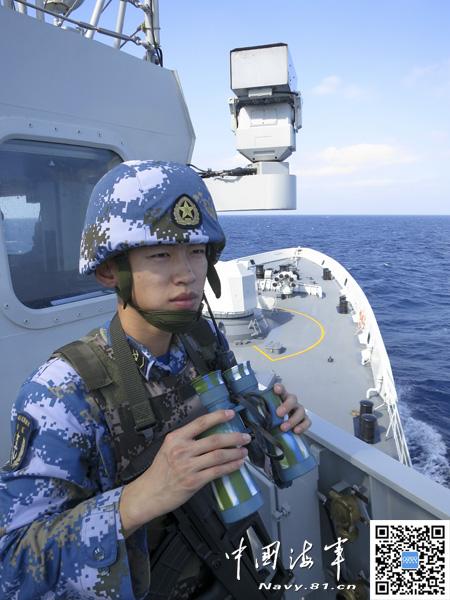 中国海军第十六批护航编队 顺利抵达亚丁湾 索马里海域 进入护航海域各舰加强观察警戒,确保航行安全。 胡全福 摄