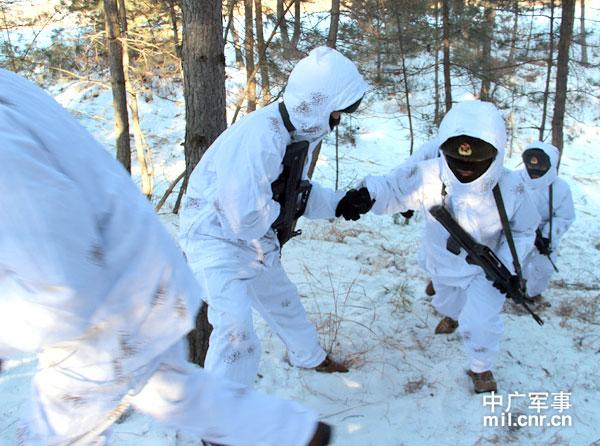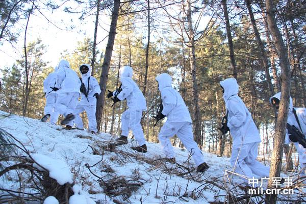 沈阳军区某装甲旅拉练:雪地伪装穿山林(图)