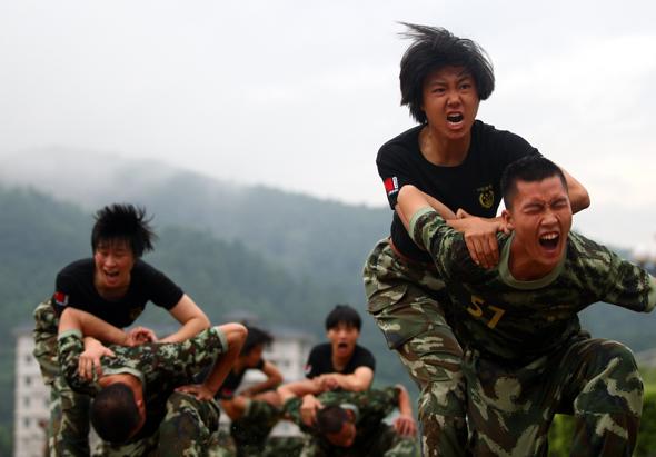 武警女子特战队练硬功:脊背抗猛打折断木棍(图)(2)