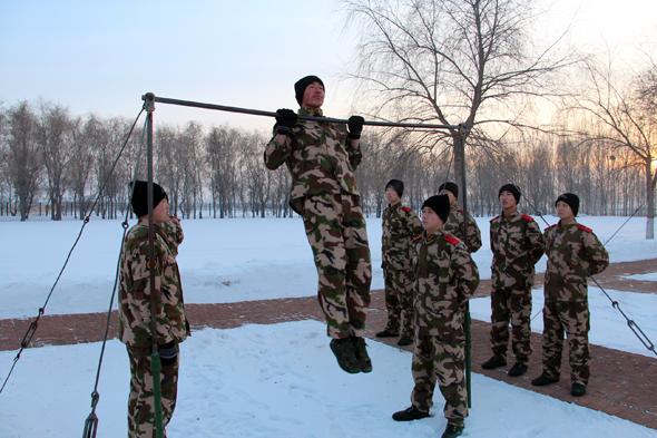 武警兴安盟支队冬季大练兵:雪地上单杠(图)