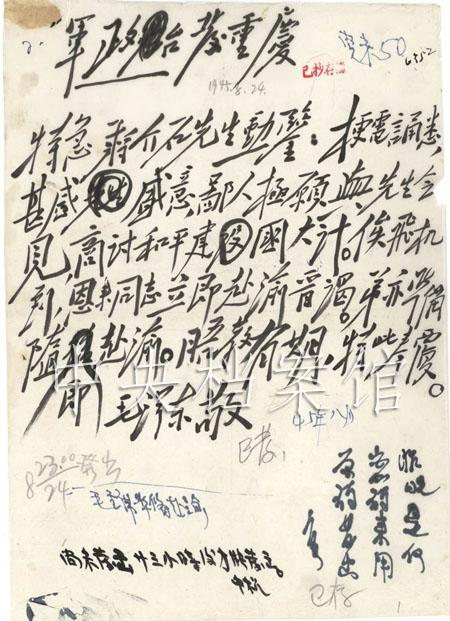 8月24日,毛泽东复电蒋介石:“梗电诵悉。甚感盛意。鄙人亟愿与先生会见,共商和平建国之大计,俟飞机到,恩来同志立即赴渝进谒,弟亦准备随即赴渝。晤教有期,特此奉复。”