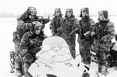 阿勒泰军分区边防官兵踏雪巡逻 维护防区安全