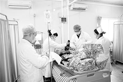 “医院启动急救预案,先遣医疗组立即出发……”伤情就是命令,医疗队队长杨波果断下达救援命令。3分钟后,一支由3名医生、1名卫生员组成的先遣医疗组,全副武装乘坐救护车呼啸而出,紧急奔赴指定地域。