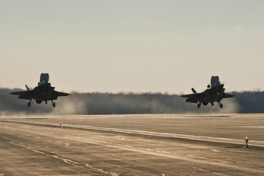 美F-35B战机首次短距起降模式下近距编队飞行(图)