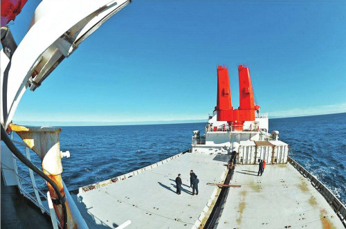 3月9日,正在回国途中的中国第30次南极科学考察队乘坐“雪龙”号极地考察船,顺利驶出波涛汹涌的“魔鬼西风带”,进入印度洋。 张建松 摄