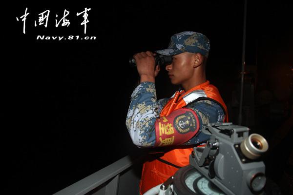 中新网3月12日电 据中国海军网报道,3月11日晚,泰国湾南部,上午刚刚抵达任务海区的中国海军井冈山舰甲板灯火通明。马航失联客机的每一点信息都牵动着中国海军搜救官兵的心。夜海中的舰艇瞪大眼睛,警惕地守望着海面上每一个可疑目标。