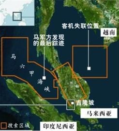 3月8日,马来西亚飞往中国的MH370号航班在起飞50分钟后,突然在南海上空与地面失去联系,引起各方密切关注和紧密调查。近日,马来西亚政府相关人员透露,马军方随后分析军用雷达的记录发现,客机失踪后在其失踪地点周边海域,检测到了不明物体向西持续移动的航迹。该物体横穿马来半岛持续移动了约1小时10分钟。该物体在8日凌晨2点40分到达距马航客机失联海域约550公里的马六甲海峡上空,随后其航迹消失不见。