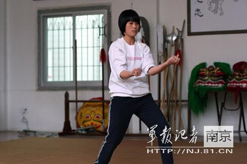 许多同学都不解问她:“一个好好的女孩子,为什么去学武术?那么暴力多不合群啊?”但是,她却告诉笔者,自己从小就有个愿望,就是能够当一个英姿飒爽的女兵,在军营舞台上尽显风采,但由于年龄限制,那时,她只能在练武中默默等待。