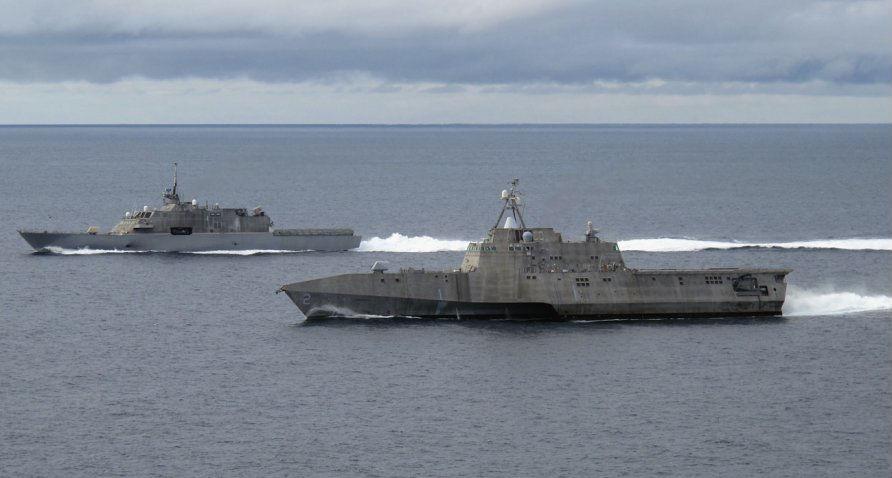 美国海军“自由”号(LCS 1)和“独立”号(LCS 2)近海战斗舰2012年在加利福尼亚附近海域航行