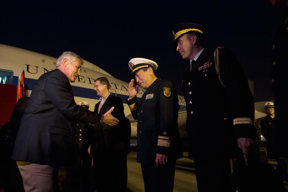 应中国国防部长常万全邀请,美国防长哈格尔4月7日中午抵达青岛并开始了其3天访华行程。