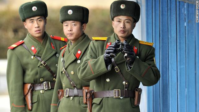 朝鲜士兵隔着朝鲜非军事区远望韩国