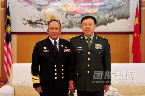 中新网4月23日电 据国防部网站报道,中央军委副主席范长龙上将23日上午在青岛会见了来华出席西太海军论坛第14届年会的马来西亚海军司令阿齐兹海军上将。(李晓伟摄)