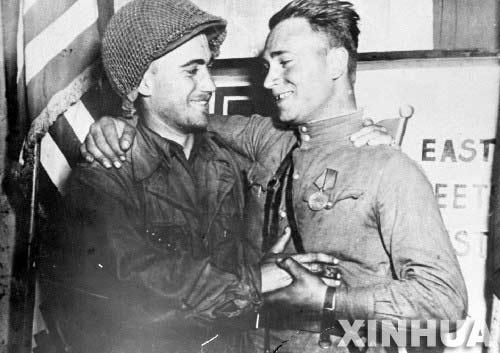 1945年4月25日,美军第1集团军与苏军乌克兰第1方面军在托尔高附近易北河一座被破坏的桥上胜利会师,东西线战场连接在一起。美军士兵与苏联红军互相握手,欢呼雀跃的历史性一幕通过一张照片迅速传遍世界,成为世界反法西斯战争欧洲战场出现胜利曙光,希特勒纳粹政府即将灭亡的最著名象征之一。