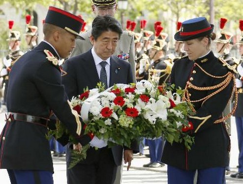 安倍向法国无名战士墓献花 不符条件强烈要求(图)