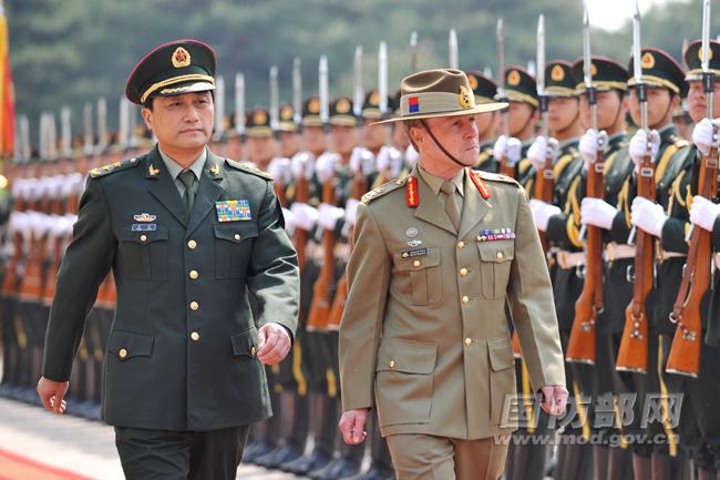 王宁与澳陆军司令会谈 检阅中国陆军仪仗队(图)