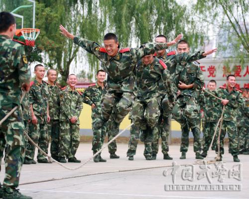 官兵课余进行跳绳训练