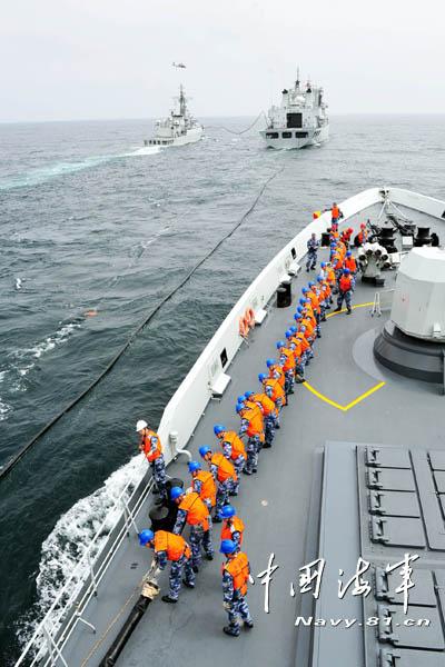 海军第16批护航编队在大西洋完成航行补给(图)