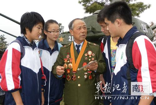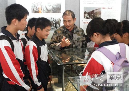 赵明才在大金山国防园为溧水一中学生讲雷锋
