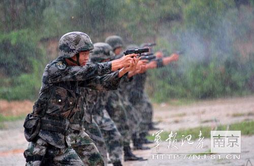 南京军区闽南某团暴雨中组织手枪速射考核(图)