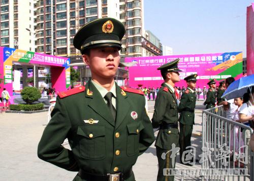 甘肃武警600余官兵“护航”国际马拉松赛(图)