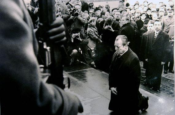 1970年12月7日,联邦德国前总理勃兰特双膝跪在波兰犹太人死难者纪念碑前。