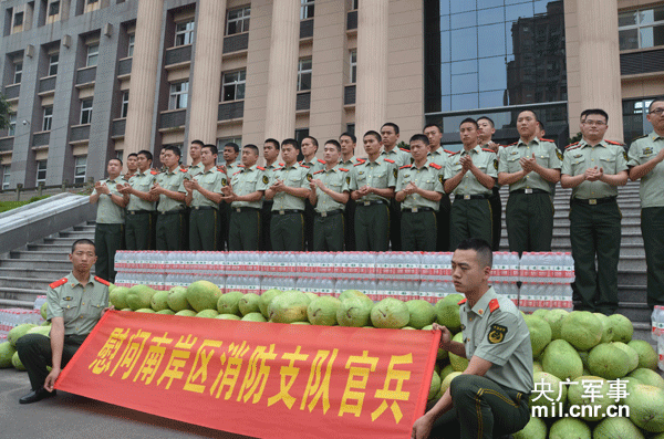 与往年不同,今年刚进入6月,山城重庆便迎来高温暑天,大田村村民贾紫焰和妻子林华贤决定提前到部队慰问,今天他带着5000斤西瓜和50箱矿泉水来到了重庆某公安消防支队。