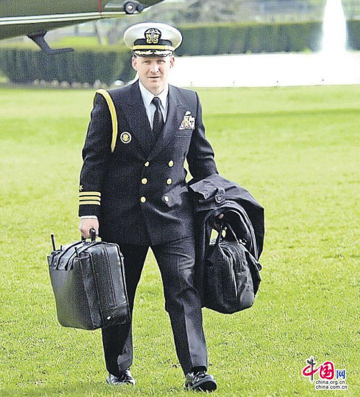 跟随总统的美国海军军官有时会提不止一只核皮箱。图中这位仁兄左手提的是“核提箱”