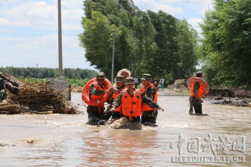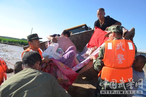 吉林白城武警紧急营救上千被洪水围困群众(图)