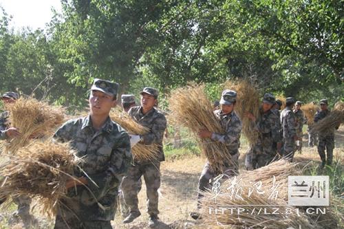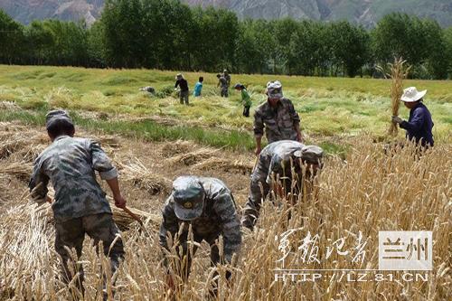 驻疆边防团官兵为驻地少数民族群众割麦子(组图)