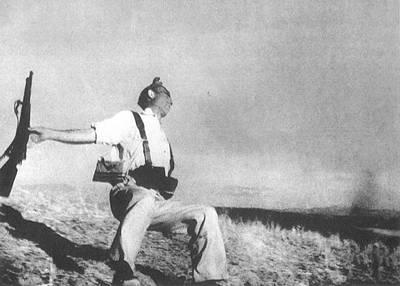 1936年,西班牙内战爆发,罗伯特·卡帕作为一家法国杂志的特派记者奔赴战场。他冒着枪林弹雨,从战壕中伸出相机拍下了一个共和战士中弹即将倒下的瞬间形象。这幅题为《死亡的一瞬间》的作品,揭示了战争的残酷,以撼人心魄的力量,成为享誉世界的经典之作。