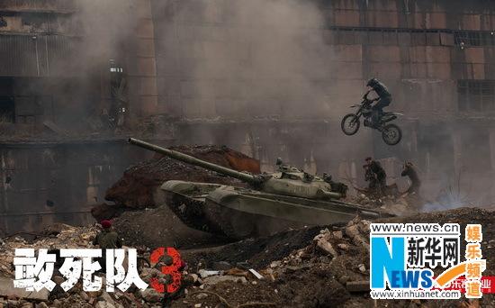 《敢死队3》大场面战斗:摩托车单挑坦克(组图)