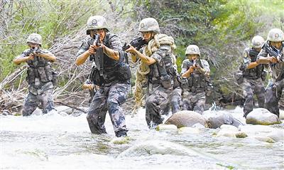 7月中旬,第13集团军某团在野外驻训地展开战术对抗训练,锤炼官兵复杂环境下的作战能力。图为该团官兵进行涉水搜索 钟高国摄